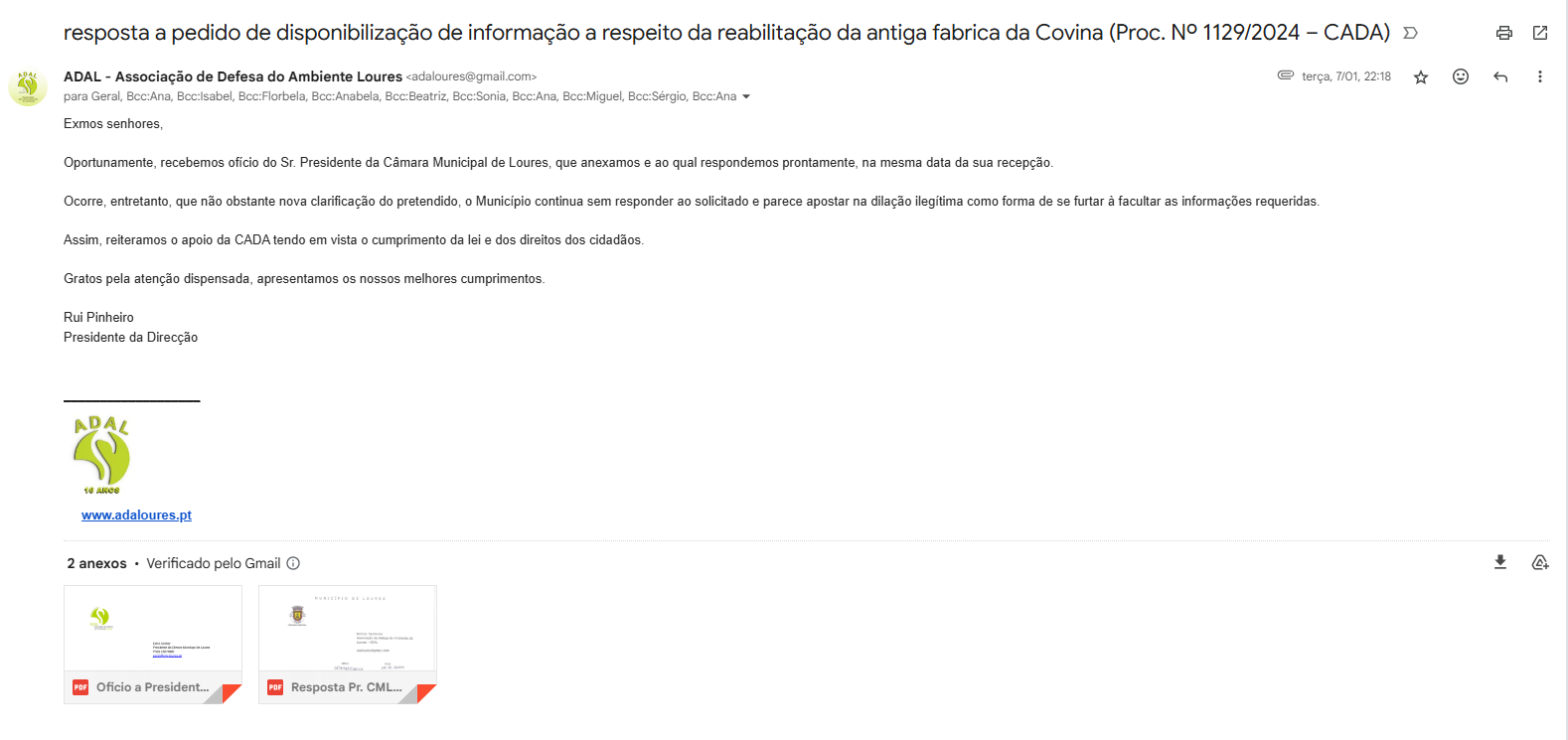 CADA comunica Parecer dando razão à queixa da ADAL