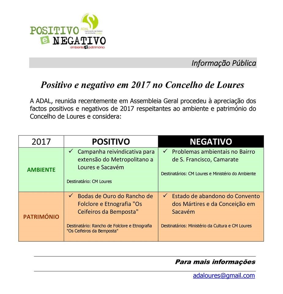 Na sequência da eleição, na Assembleia-Geral de 22 de Março, dos aspectos Positivos e Negativos de 2017, a ADAL emitiu a seguinte Informação Pública:
