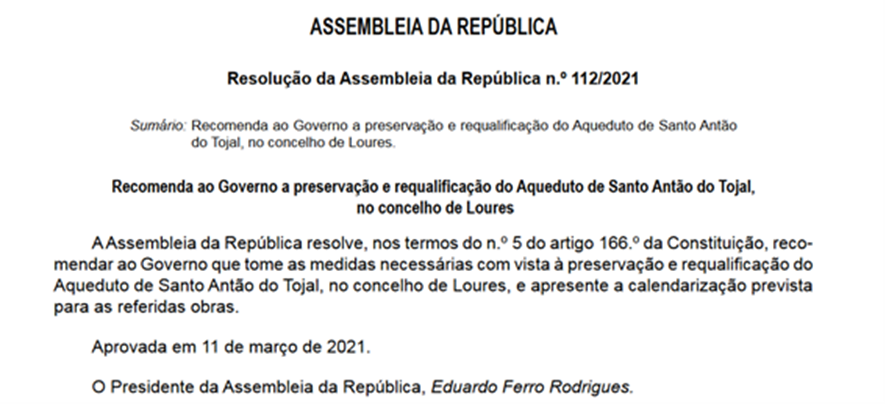 Em 2021, a Assembleia da República tomou a Resolução que abaixo se apresenta; contudo, não se conheceram quaisquer acções que apontem no sentido de cumprir a deliberação do Parlamento.