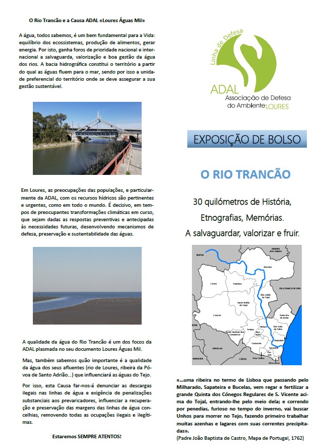 A qualidade da água do Rio Trancão é um dos focos da ADAL plasmada no seu documento Loures Águas Mil.