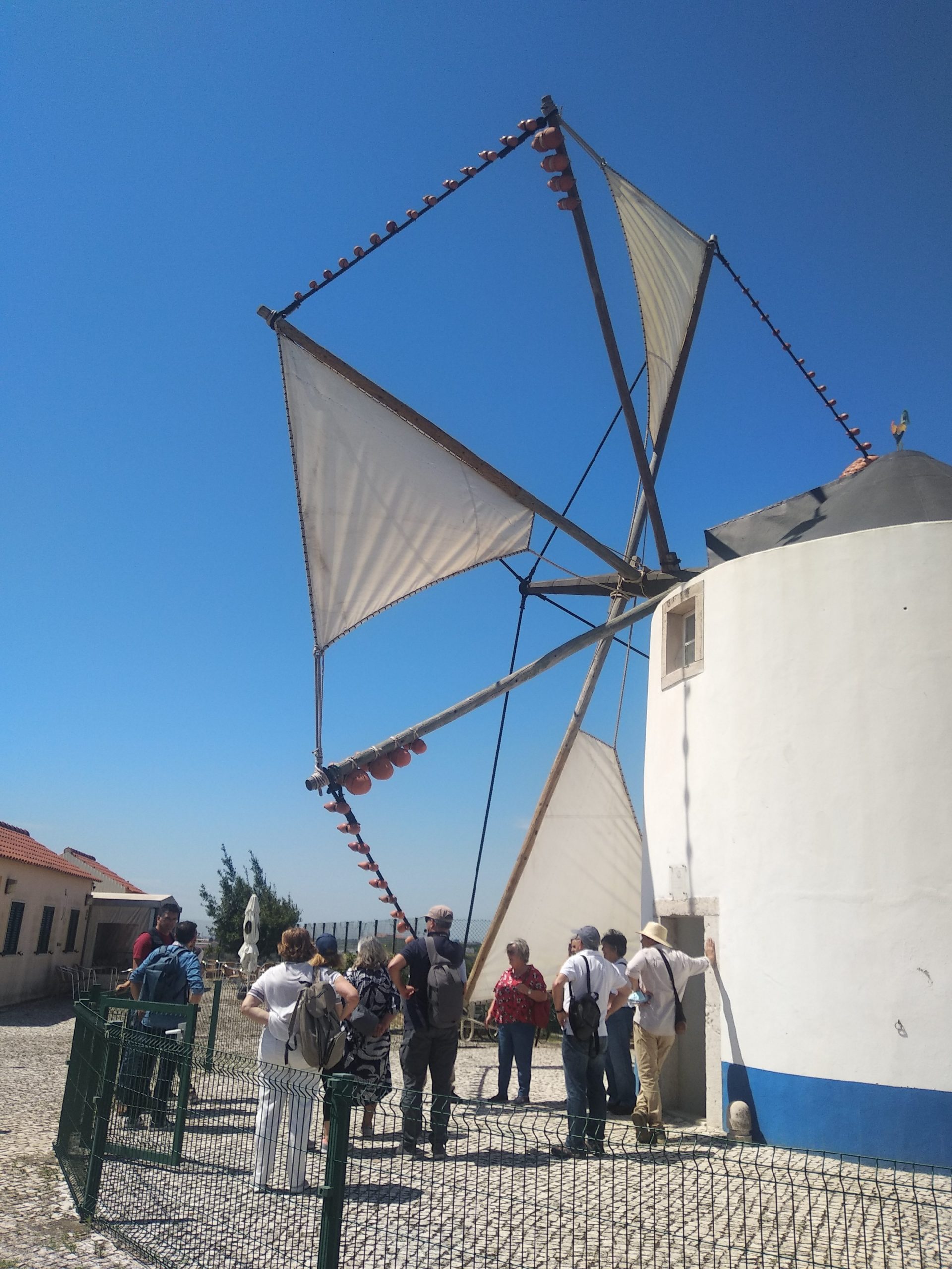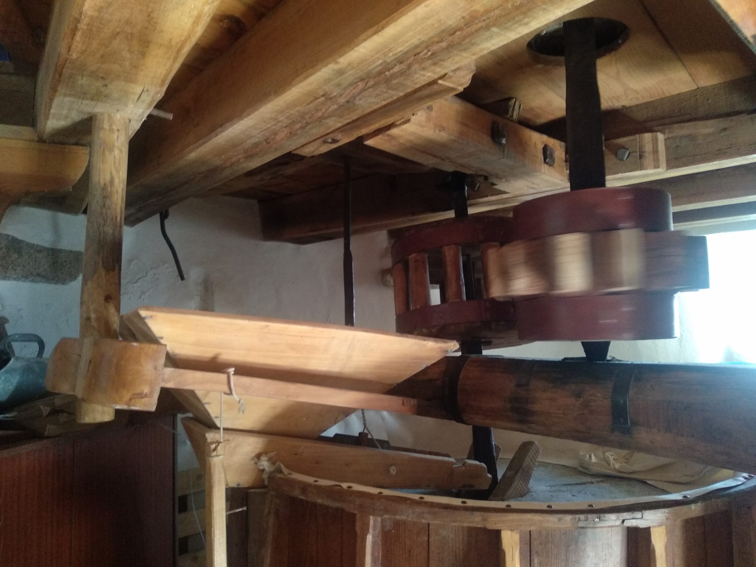 Nesta visita ficámos a conhecer as funções de várias componentes do moinho e, talvez a grande curiosidade tenha sido a função dos búzios que estão colocados no cordame das varas. No interior foi-nos explicado todo o funcionamento do moinho na produção da farinha.