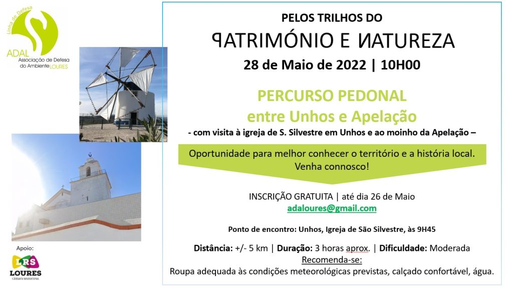 Aceite o convite da ADAL e passe a manhã de 28 de Maio Pelos Trilhos do Património e da Natureza entre Unhos e a Apelação.