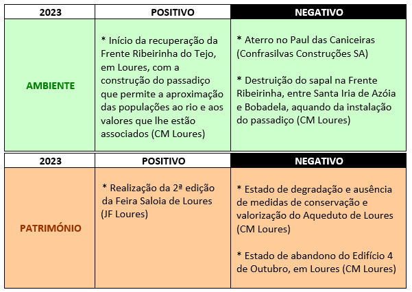 Na Assembleia Geral Ordinária de 12 de Março de 2024 foram eleitos os seguintes aspectos Positivos e Negativos de 2023: